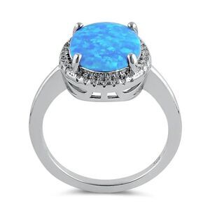 New Sterling Silver Blue Opal Oval Halo Clear CZ Ring
