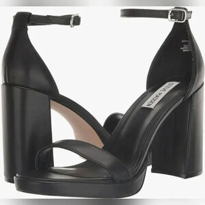 New Steve Madden 11 Block Heel Black Leather Events Modern Stylish Sandals