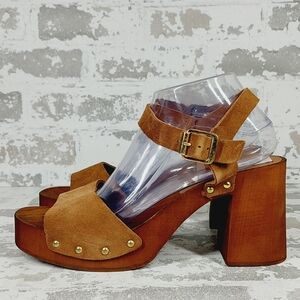 New Steve Madden Alabama Platform Suede Brown Strap Wooden Studded Sandals F866
