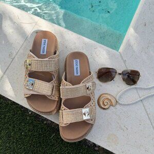 New Steve Madden Bigschmona Sandal in Natural Raffia platform