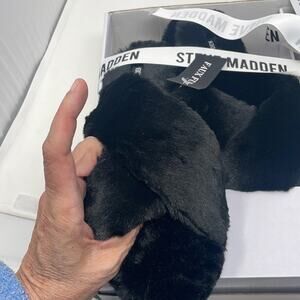 New! Steve Madden Brushed Buffalo plaid scarf with plush sandals
