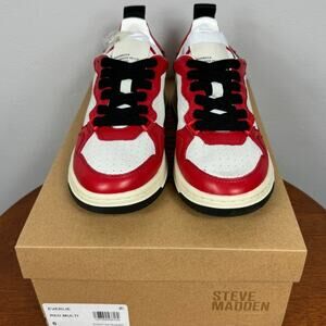 New Steve Madden Everlie Leather Sneakers in Red Multi Women's Size 6