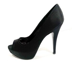 Steve Madden Feelixx Black Satin Peep Toe Heel Rhinestones
