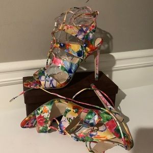 Beautiful floral strappy sandal heels. Can be worn as dressy or casual look. In great condition. New without box. Heel 4.5”