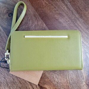 New Steve Madden Green Wallet Zip Around Large Bifold Wristlet Clutch