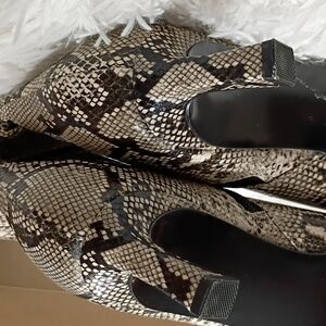 Elevate your look with these stylish python print booties. Perfect for any occasion. Side zippers for easy wear.
