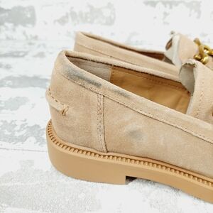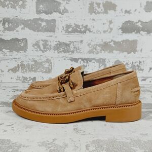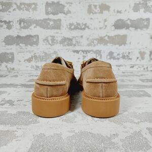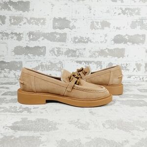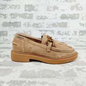 New Steve Madden Karmine Gleaming Tan Suede Goldtone Hardware Loafer W88