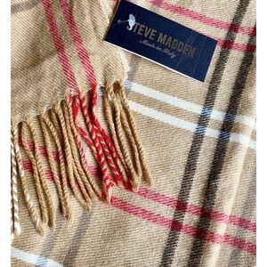 New Steve Madden Made in Italy Camel Beige & Red Super Soft Plaid Scarf