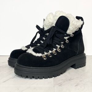 New! Steve Madden Resa Faux Shearling Lace Up Boot 6M