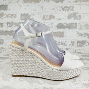 New Steve Madden Tory White Leather Wedge Heel Platform Sandals O131