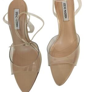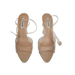 New Steve Madden Women's Beki Two-Piece Flare-Heel Sandals Clear 9M