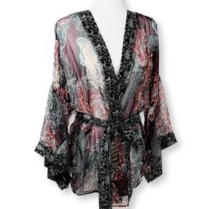 New Steve Madden Women's Boho Semi-sheer Paisley Print Belted Kimono Top