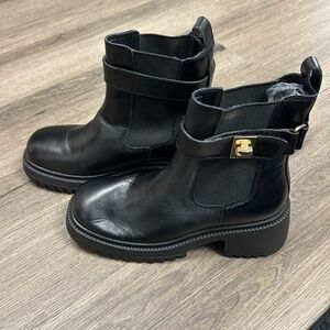 New Steve Madden Women's Gates Buckle-Detailed Lug-Sole Booties Size 7.5