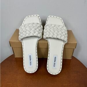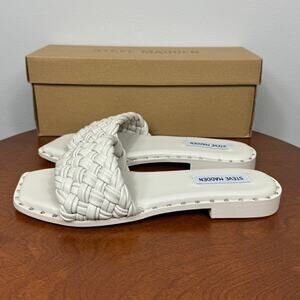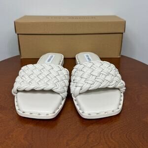 New Steve Madden Wynslow Slide Sandal in Bone Faux Leather Women's Size 7.5