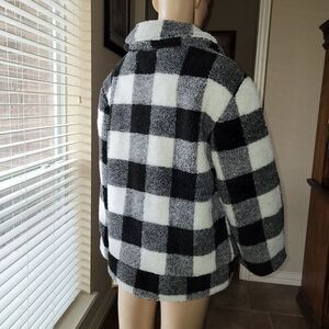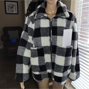 New Steve Madden Black & White Buffalo Plaid Fleece Zip-Up Women's Jacket