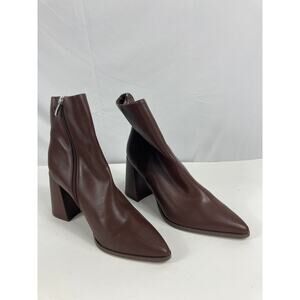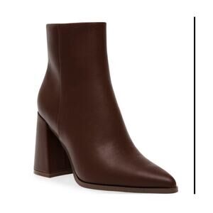 A flared heel adds modern style to a pointed toe boot that is designed to add drama to any look.