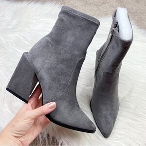 New Steven New York by Steve Madden Taite Pointed Toe Booties in Gray Faux Suede