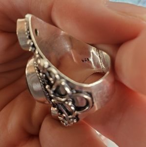 New Stingray Coral & Smoky Quartz 925 Silver Statement Ring.