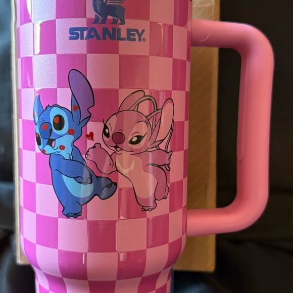 New Stitch Stanley Pink Checker Tumbler with Straw 40oz