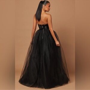 New Strapless Deep V Sequin Tulle Gown in Black Size Medium