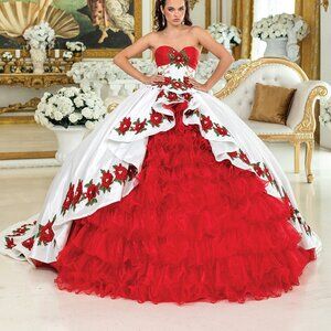 New Strapless Floral Lace Embellished Quinceanera Gown w/ Lace Up Back DQ 1934