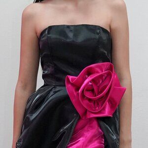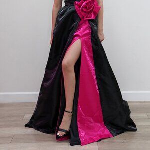New Strapless Organza Maxi Ball Gown w/ Rose Accent & Charming Leg Slit JT2733H