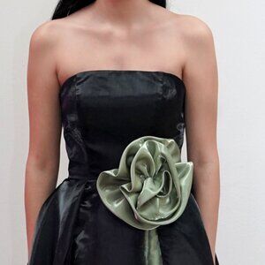 New Strapless Organza Maxi Ball Gown w/ Rose Accent & Charming Leg Slit JT2733H
