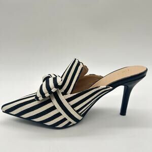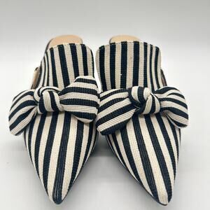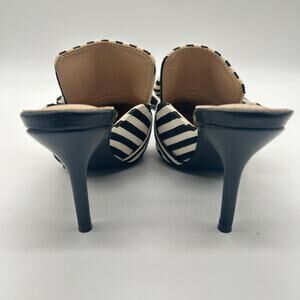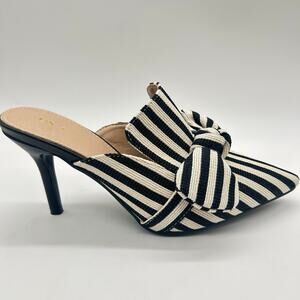 New Striped Fabric Bow Pointed Toe Black White Allegra Slip On Heels Mules 7