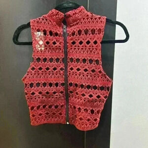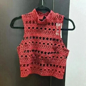 New Strut and Bolt Los Angeles Brown/Burgundy Lace Sleeveless Top and Skirt. Black lining on top & skirt. Top with zipper and button closure Skirt with black elasticated band at waist Size-small