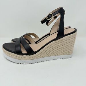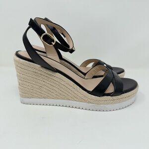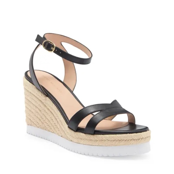 New Stuart Weitzman Catlina Espadrille Wedge Sandal Black Sz 9.5
