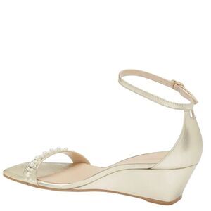 New Stuart Weitzman Pearl Leather Wedge ankle strap square toe sandal 8