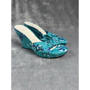 New! Stuart Weitzman RARE Turquoise Floral Statement Wedge Slip On Heel Size 7.5