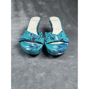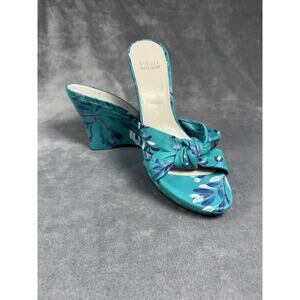 New! Stuart Weitzman RARE Turquoise Floral Statement Wedge Slip On Heel Size 7.5