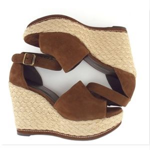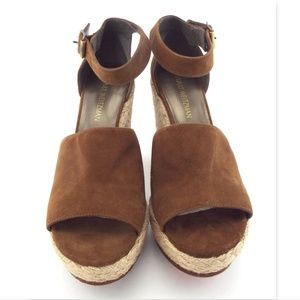 New Stuart Weitzman Saddle Brown Suede Espadrille Wedge Heel Sandals 10.5