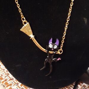 Studio Ghibli Kiki's Delivery Service Jiji Hanging On Broom Necklace.