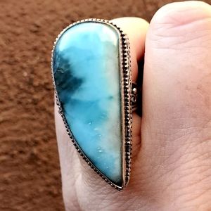 Brand New Handmade Larimar Antique Design Silver Statement Ring.
