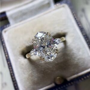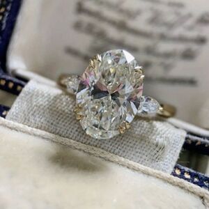 💎 NEW Luxurious Fashion Womans Goldtone overlay Natural Oval White CZ Diamond Ring Romantic Setting 4 carats 💎 with crystal stones on each side size 8 💎