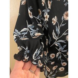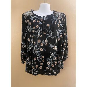 New Style & Co. Floral Daisy Blouse Peasant Style Yoke Top Size Small