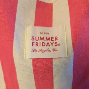 Get ready for summer with this adorable Summer Fridays Pink Guava striped beach tote bag!