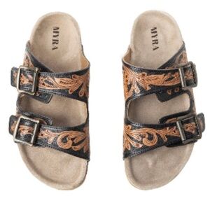 New Summer Myra Bag Handmade Tooled Genuine Leather Spring Sandals Black Brown