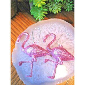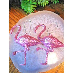 New Summer Retro 80s Style Bright Pink Flamingo Glitter Dangle Earrings - 2.75”