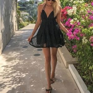 New Summer Strappy Halter Mini Dress Mesh Lace Dot Black