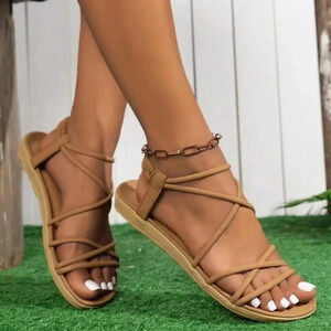 New Summer Women Elegant And Comfortable Large Size Flat Sandals With Straps For