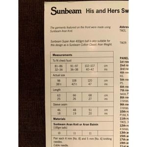 New Sunbeam Aran Knit 1497 His Hers Diamond Moss Stitch Sweater Knitting Pattern
