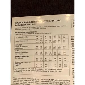 New Sunbeam Aran Knit 1852 Saddle Shouldered Tunic and Sweater Knitting Pattern
