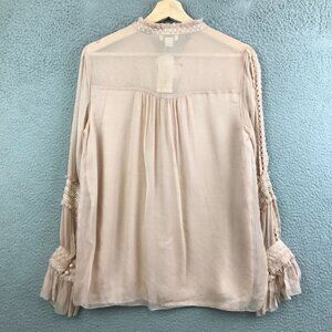 New Sundance Womens Sophia Blouse XS Peach Lace Long Sleeve Button Detail