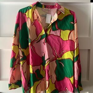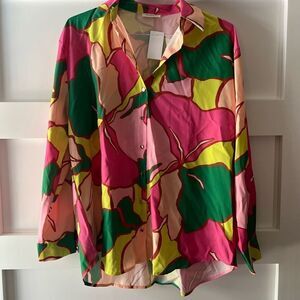 New with tags. Purchased from a local boutique. Gorgeous blouse. Vibrant colors. Floral button down SKU: 2918855 approx measurements across chest 22” length 28” button down. 100% polyester