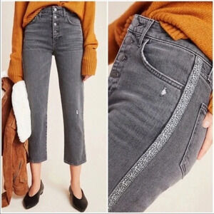 New Sundry (for Anthropologie) Leopard Trim Ultra High Rise Straight Jeans. Size 24.