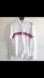 Color: White with blue and red (has a somewhat orange hue) stripe across the front