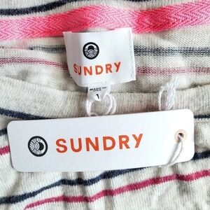 New With Tag Sundry Striped Navy/Pink Side Slits Crewneck Long Sleeves Pullover Sweatshirt